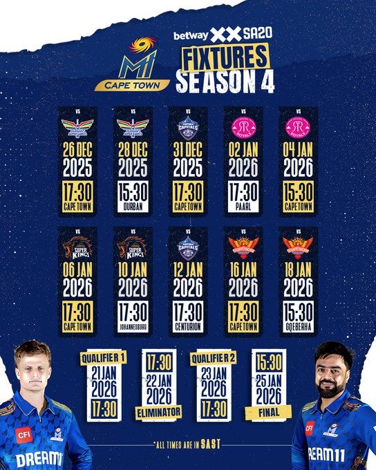 There’s no hiding that I am supporting MICT this season. After falling in love with the franchise in the IPL and even more with MICT winning it last season I am excited to see how season 4 goes. I’ve linked all their matches here and I’m ready to watch their season opener on the 26th of December.